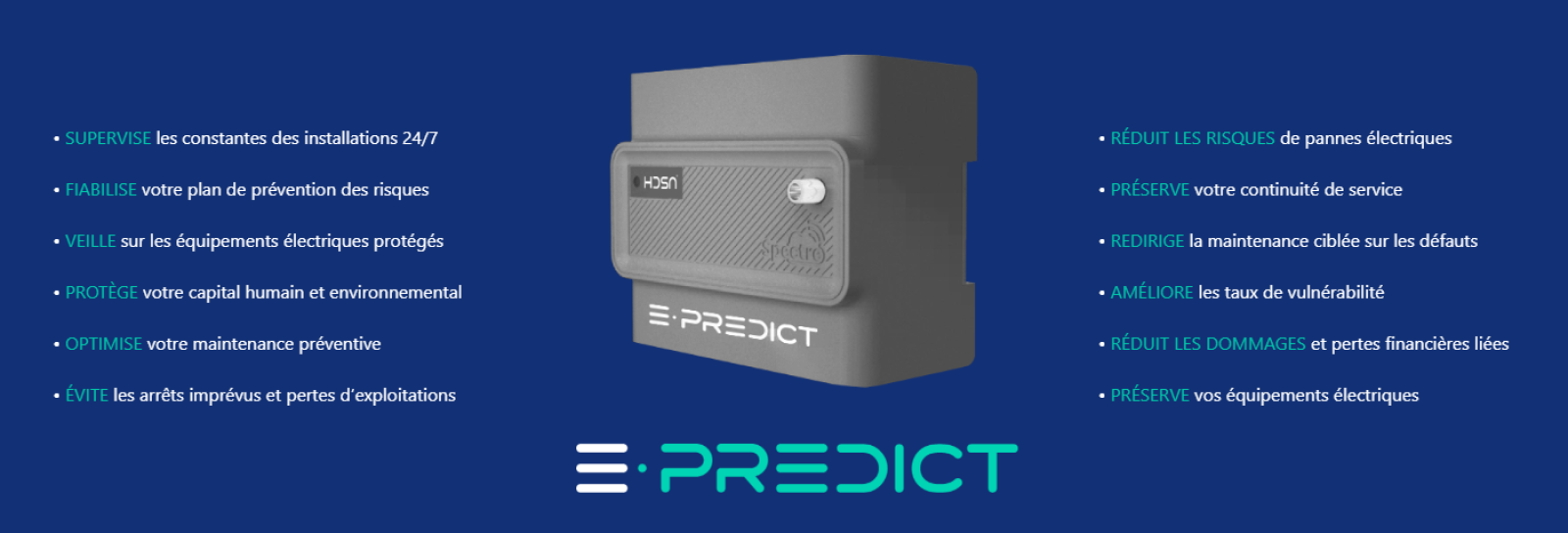 Optimisation des performances : La technologie d'E-Predict améliore l'efficacité opérationnelle des entreprises, ce qui réduit les risques et les coûts associés.